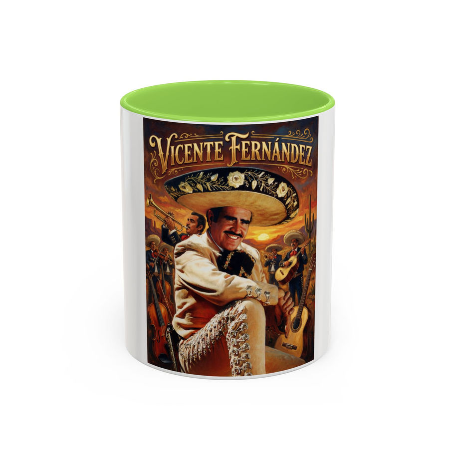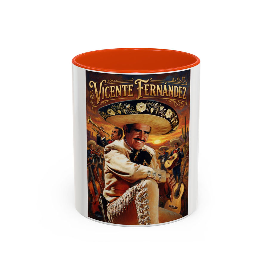 "Vicente Fernandez" Ceramic Mug - Color Accent 11oz (Ranchera Legend Portrait)